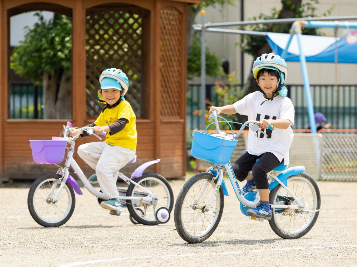 園庭活動では、幼児用自転車を常時20台程度整備しており